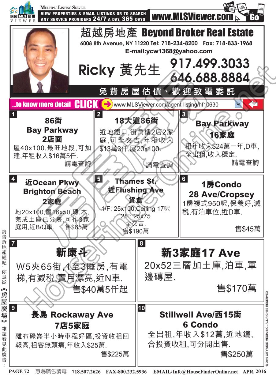 RICKY WONG 's Property List : http://mlsviewer.com/agent-listing/mls800843 (Total 0 Item(s))