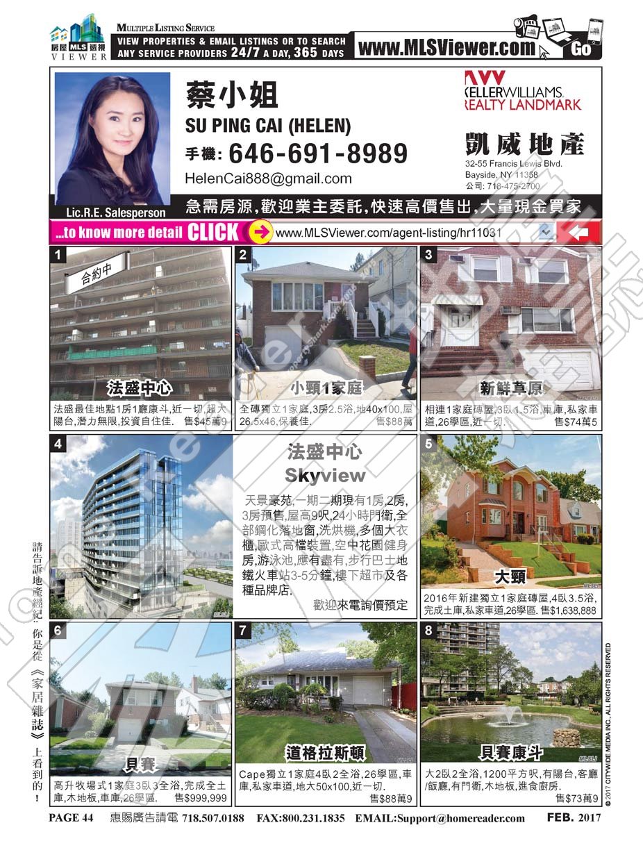 SU PING CAI (HELEN) 's Property List : http://mlsviewer.com/agent-listing/mls802869 (Total 0 Item(s))
