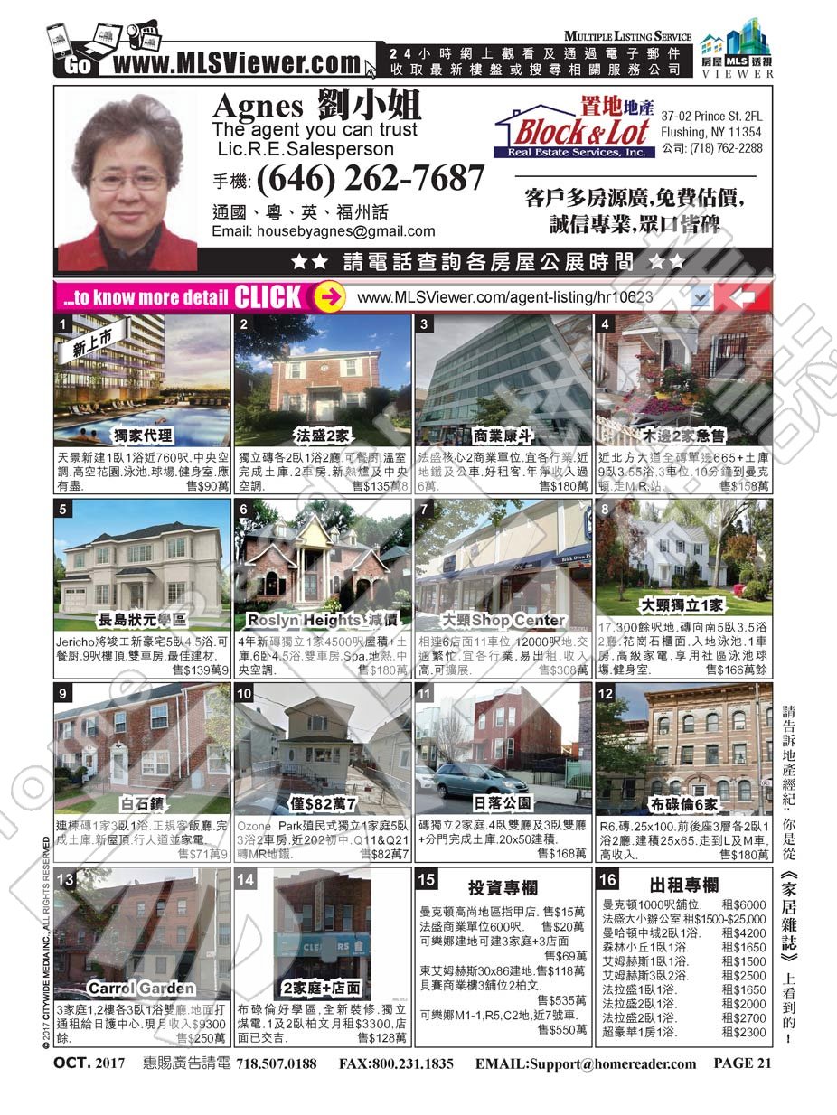 AGNES LIU 's Property List : http://mlsviewer.com/agent-listing/mls800590 (Total 2 Item(s))