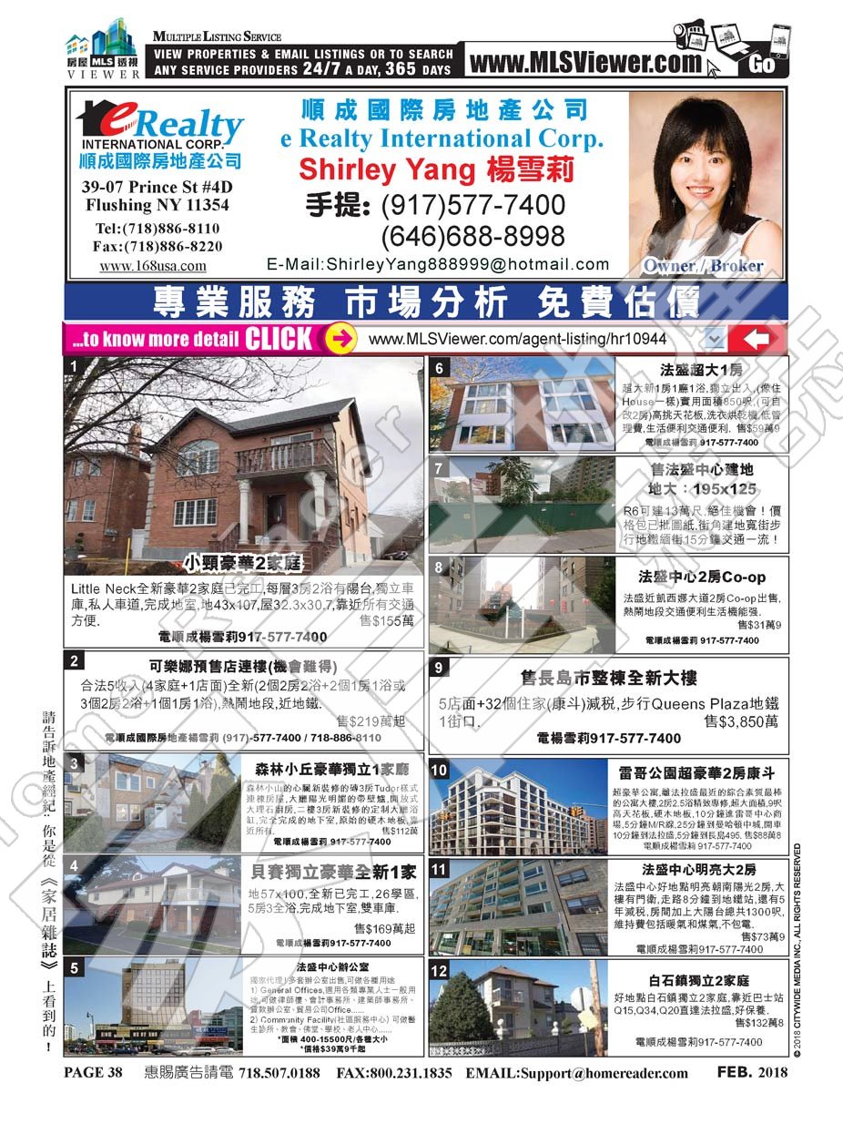 SHIRLEY YANG 's Property List : http://mlsviewer.com/agent-listing/mls802116 (Total 3 Item(s))