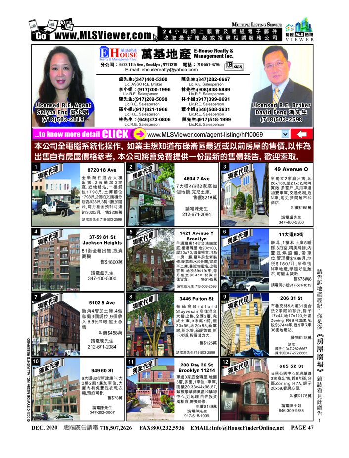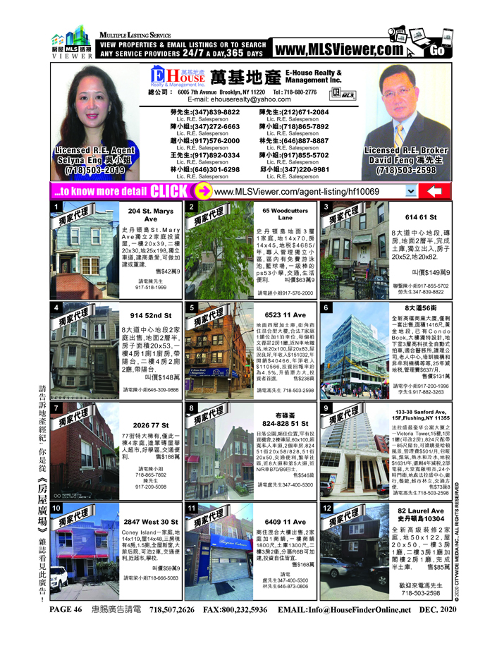 DAVID FENG (LIC RE BROKER) 's Property List : http://mlsviewer.com/agent-listing/mls800818 (Total 0 Item(s))