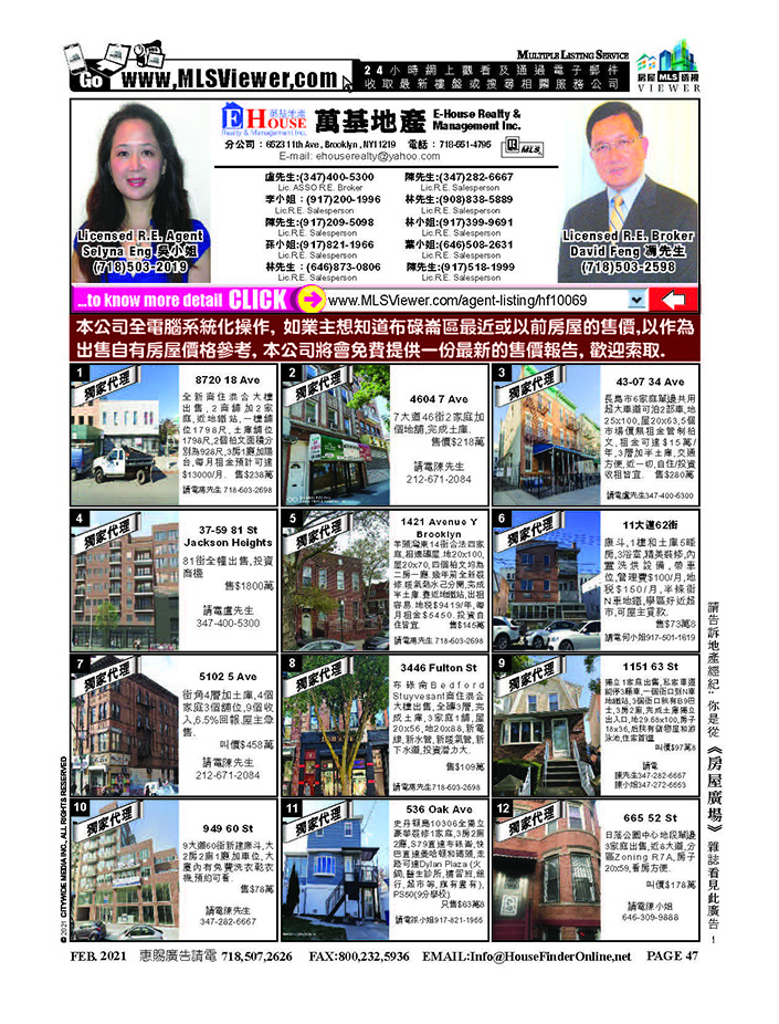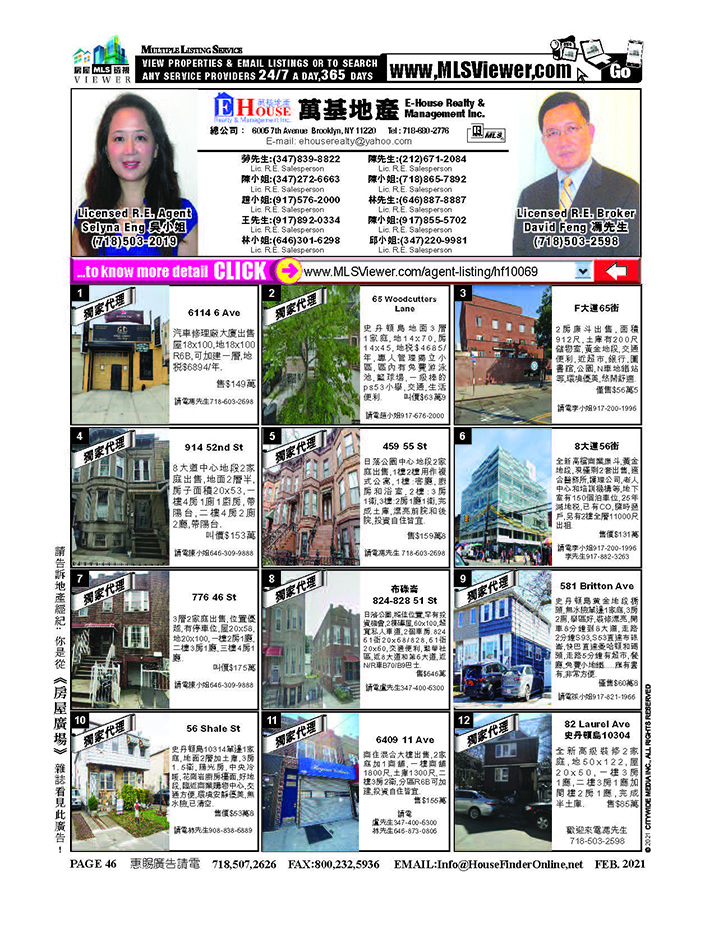 DAVID FENG (LIC RE BROKER) 's Property List : http://mlsviewer.com/agent-listing/mls800818 (Total 0 Item(s))